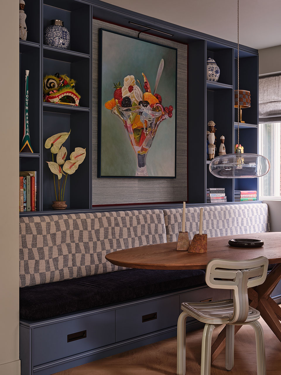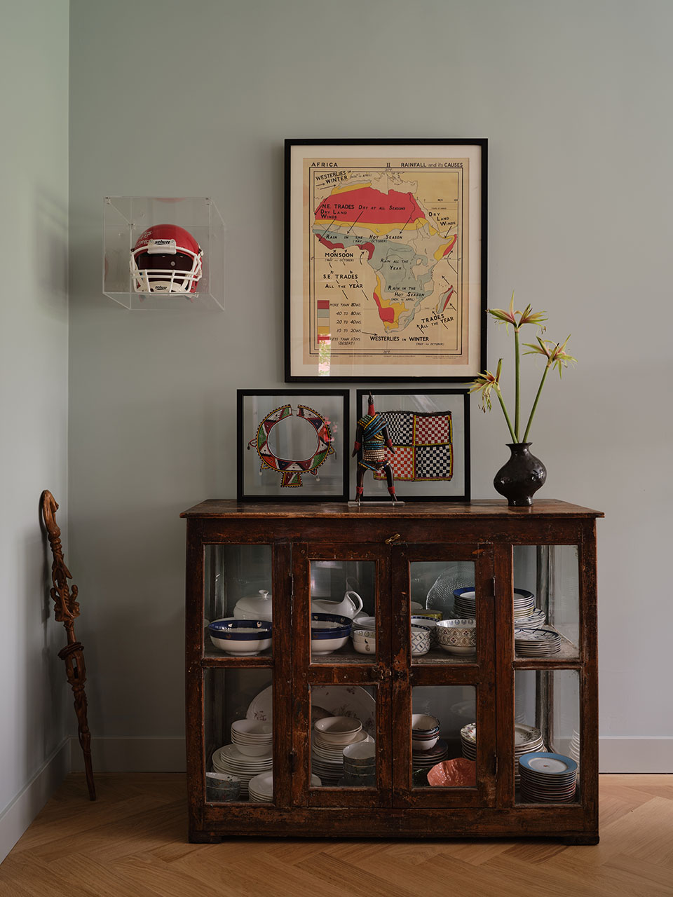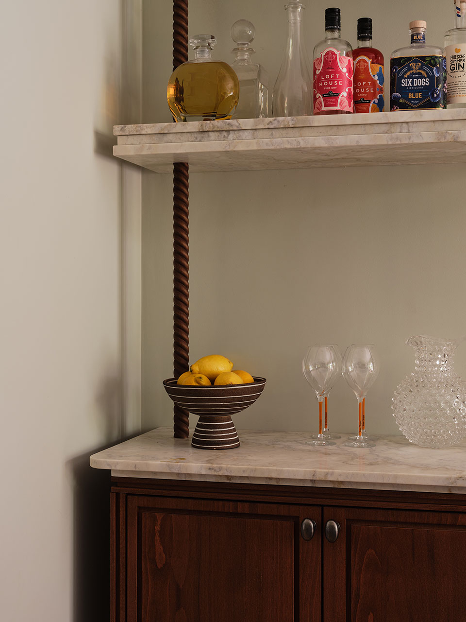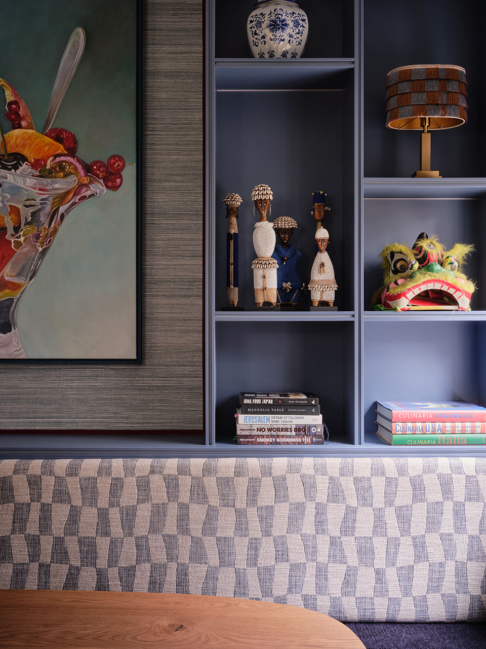 We gaven alle wereldwijd verzamelde objecten een doordachte plek en groepeerden de souvenirs en kunst zorgvuldig, zodat er rust en samenhang ontstaat zonder het internationale karakter te verliezen. Een zachte, verbindende basis in kleur en materiaal zorgt voor balans, terwijl de verzamelde stukken het verhaal van hun reizen blijven vertellen. Het resultaat: een werelds interieur dat voelt als thuiskomen.