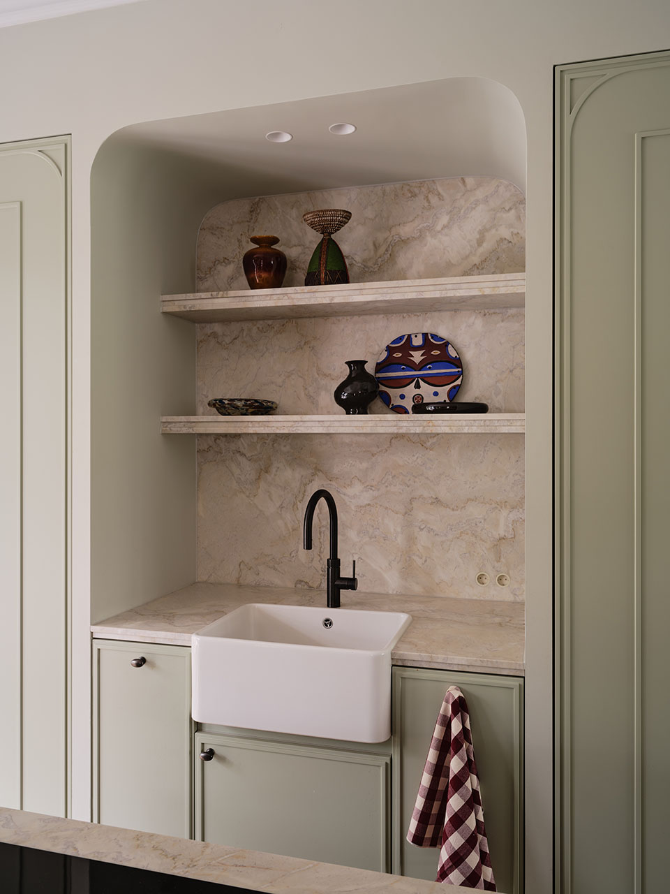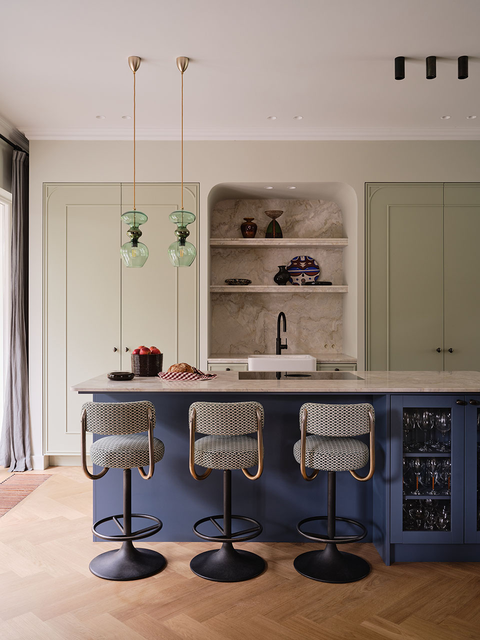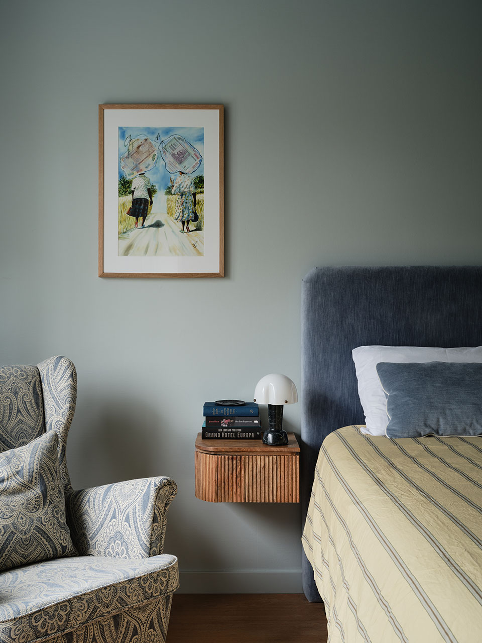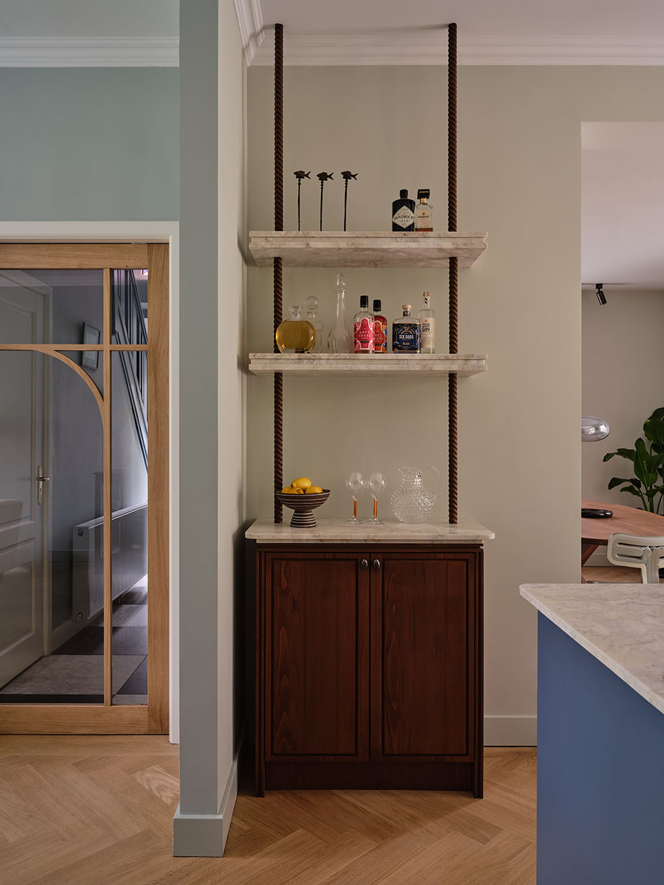 We gaven alle wereldwijd verzamelde objecten een doordachte plek en groepeerden de souvenirs en kunst zorgvuldig, zodat er rust en samenhang ontstaat zonder het internationale karakter te verliezen. Een zachte, verbindende basis in kleur en materiaal zorgt voor balans, terwijl de verzamelde stukken het verhaal van hun reizen blijven vertellen. Het resultaat: een werelds interieur dat voelt als thuiskomen.